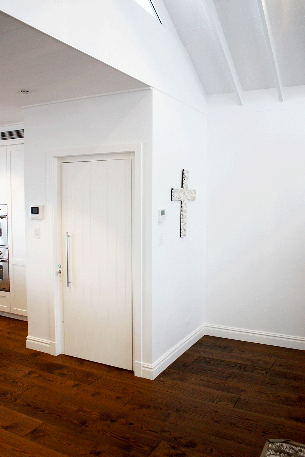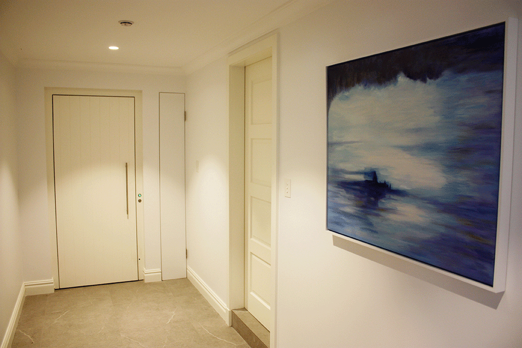 Landing doors exposed to outdoor environments received a marine‑grade protective paint. This robust finish resists salt, UV and moisture—all common by the sea—protecting the lift’s aesthetic over time and matching the home’s coastal resilience standard.