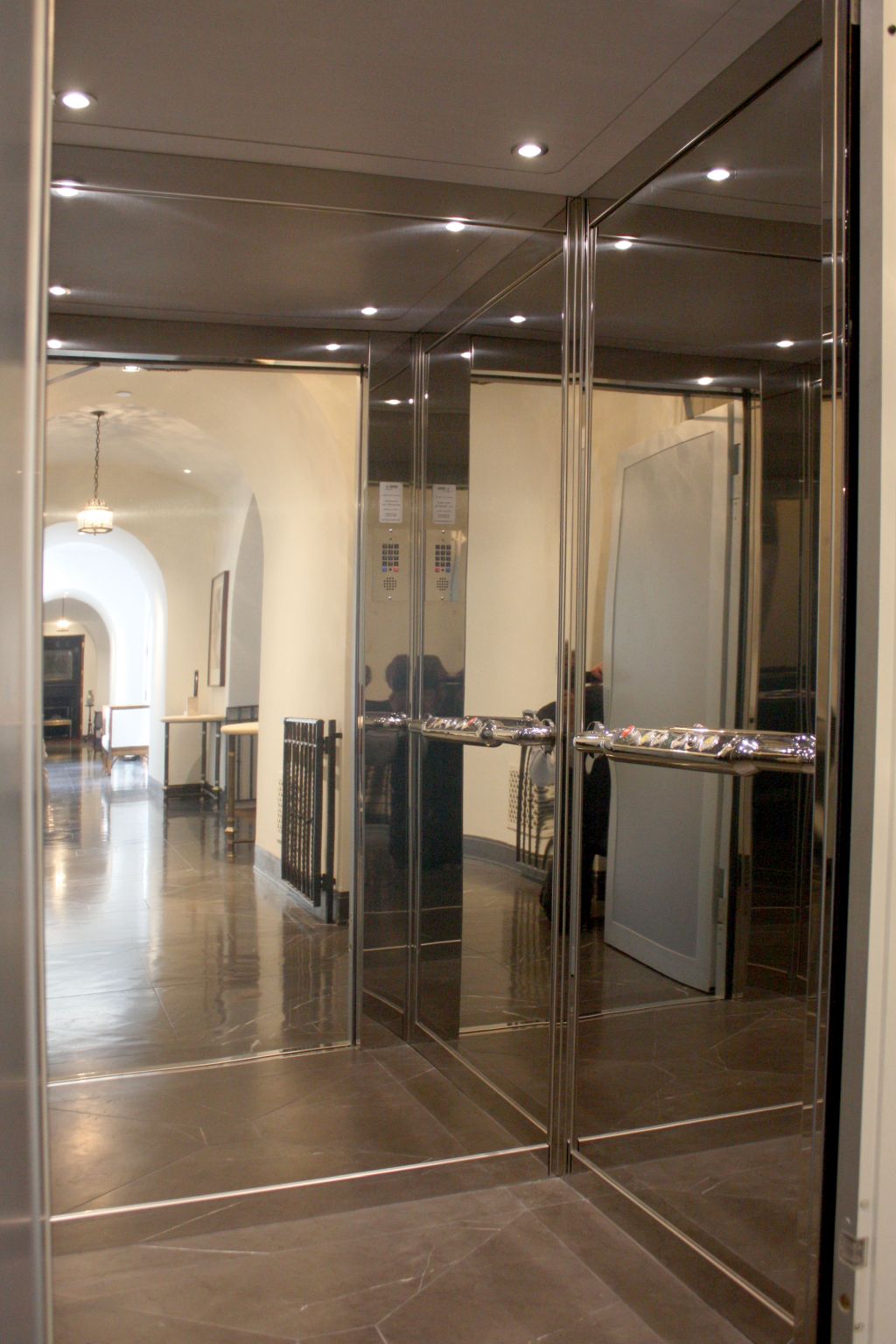 One of the standout aspects of this project is the level of visual harmony achieved. By using the same hallway tile inside the lift cabin, the transition from one space to the next feels uninterrupted. The mirrored walls expand the perceived size of the cabin while bouncing ambient light through the space—enhancing both comfort and beauty.