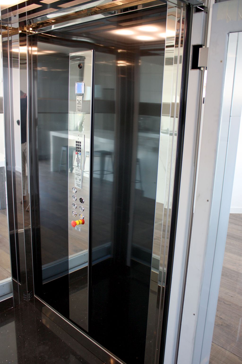 The lift’s internal fittings include meticulously selected hardware and a brushed stainless steel car operating panel, which was integrated flush to maintain clean lines. LED downlights incorporated into the ceiling ensure the cabin is well lit, further enhancing the sense of space and elegance.