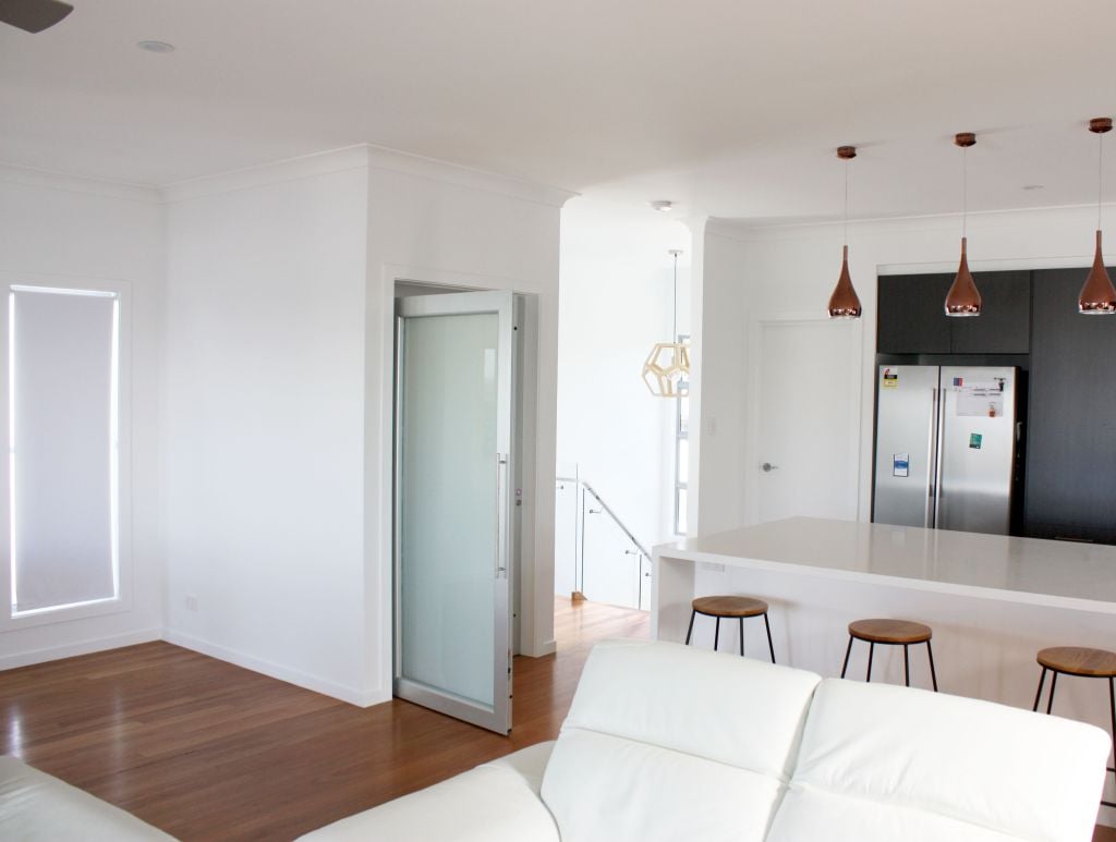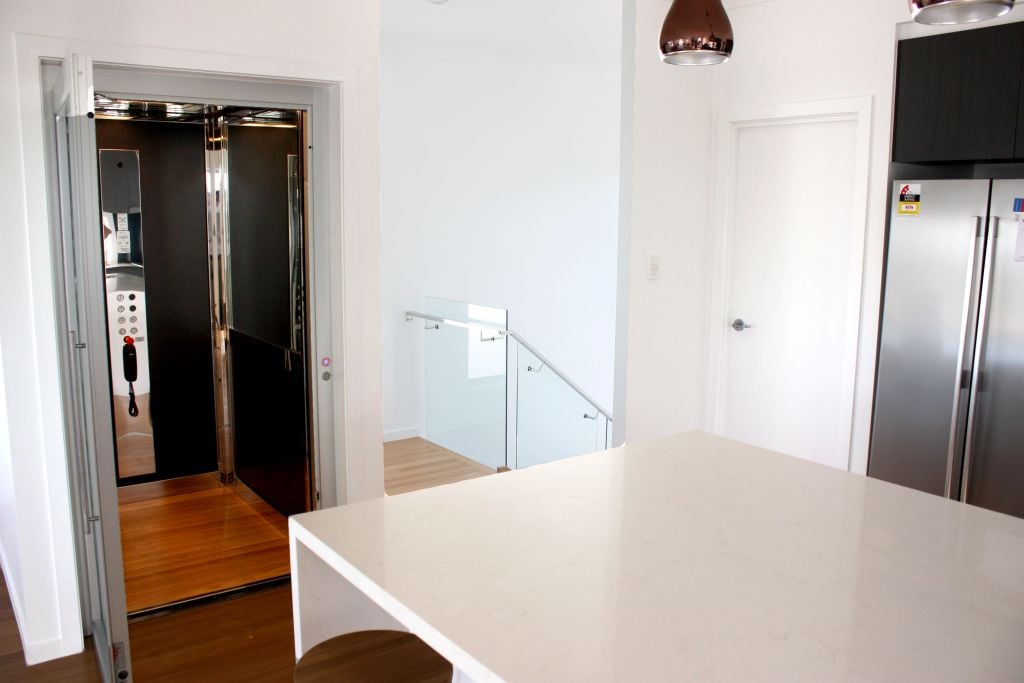 In Brisbane’s leafy suburb of Ormiston, a newly built modern residence has innovatively integrated a home lift directly into its core living space—and the result is both functional and striking. This is more than just a lift; it’s a carefully designed architectural feature that enhances the daily rhythm of the home. The lift opens right into the main living area, elevating everyday access while blending flawlessly with the interior’s white-dominated theme, proving that utility and style can coexist beautifully.