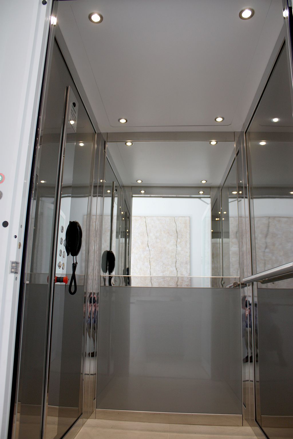 The cabin walls were clad in Lift Shop’s signature similinox skinplate, framed with polished stainless steel profiles that provide a sleek, contemporary edge. This choice balanced durability with an elegant, minimalistic look that resonates with the home’s clean lines.