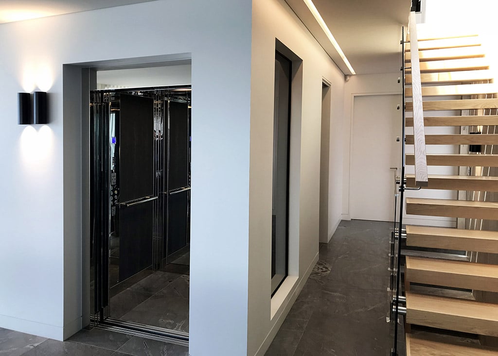 The single-configuration, two-stop lift needed to fit within the spatial constraints of the home’s layout without sacrificing cabin size or comfort. This required careful calibration of the elevator shaft and cabin dimensions, as well as the selection of door and wall finishes that would complement surrounding surfaces.