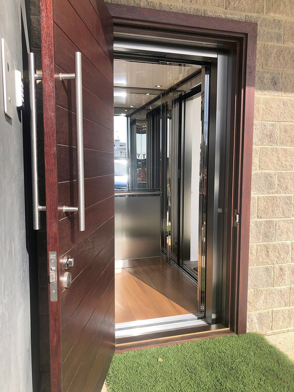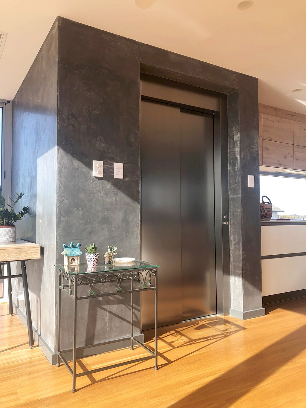 The home features a three-level layout, necessitating a lift capable of servicing all floors seamlessly. The chosen configuration was an adjacent entry design, featuring two entry points on the ground floor to maximise access convenience. This setup ensures easy movement between spaces and complements the flow of the home.