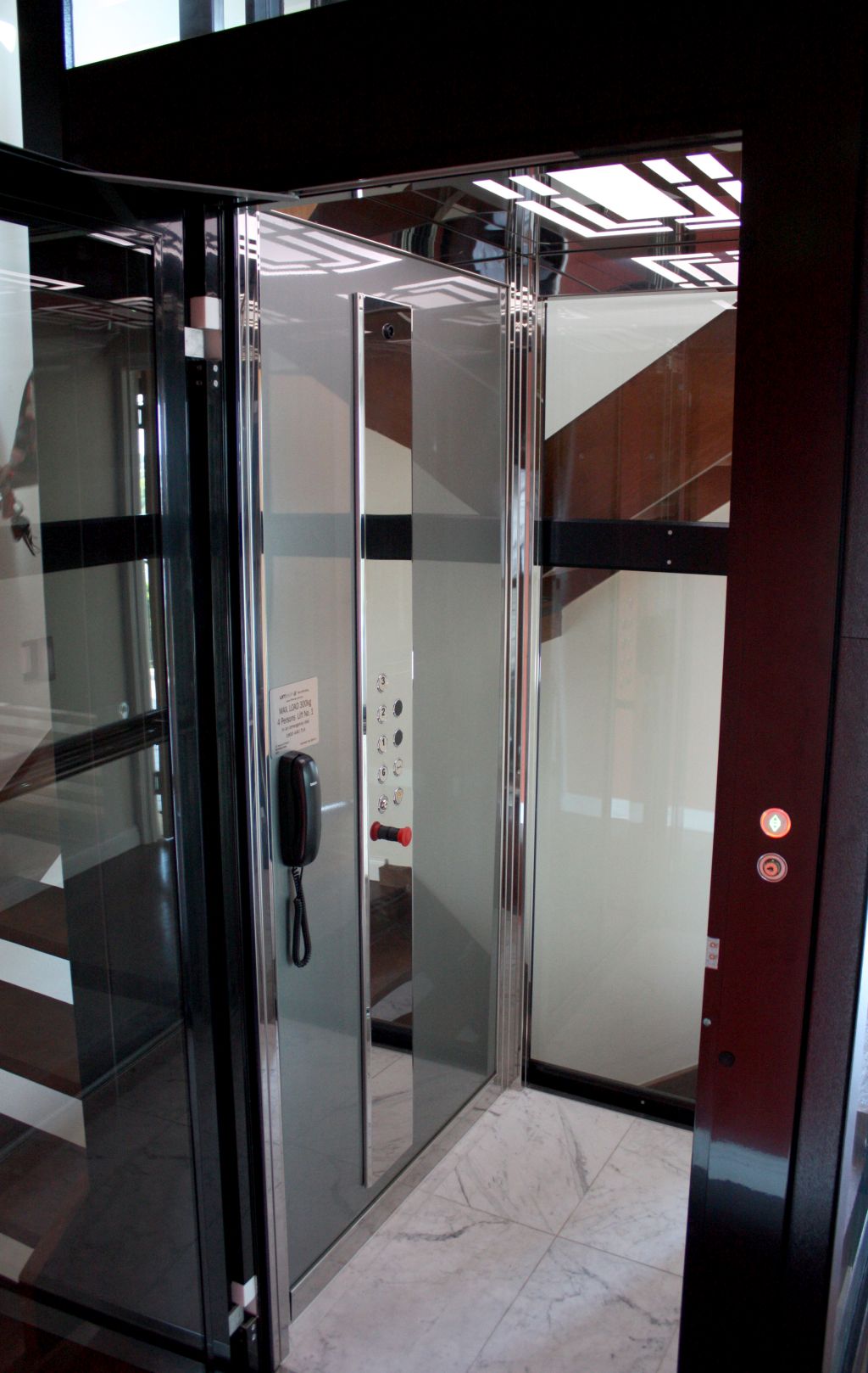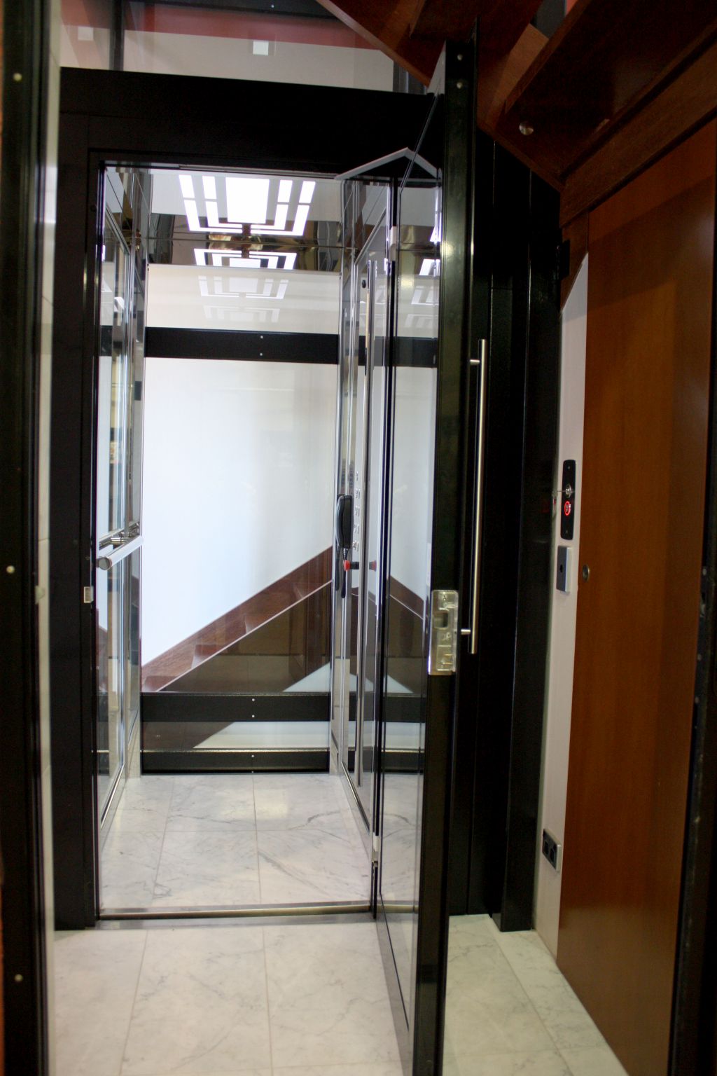 Despite its compact footprint, the lift feels anything but cramped. The smart use of materials — particularly glass panels on the cabin walls, shaft, and doors — creates an illusion of openness and lightness that belies its small size. The result is a lift that delivers a spacious visual and physical experience while occupying minimal floor area.