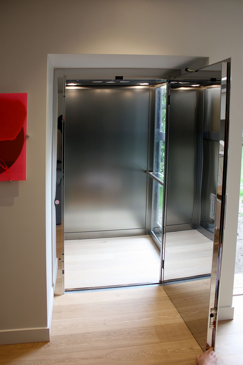 Further innovation comes from a project where Lift Shop collaborated with the homeowners and builders to determine the perfect lift location for minimal disruption. The result? A discreetly tucked away external glass shaft in a quiet corner of the property. The lower-level entrance featured a super polished stainless steel door, while the upper level included a powdercoated panoramic P1 Max glass door that harmonised beautifully with the garden views and surrounding architecture. Inside the E1 lift, one full-size glass wall was complemented by F41PPS brushed stainless steel look skinplate on the other two walls, complete with matching profiles. A flush-mounted push button telephone and slimline vertical car operating panel ensured a clean and minimalist interior. To maintain consistency, external components visible through the glass shaft were also clad in F41PPS for a unified aesthetic both inside and out.