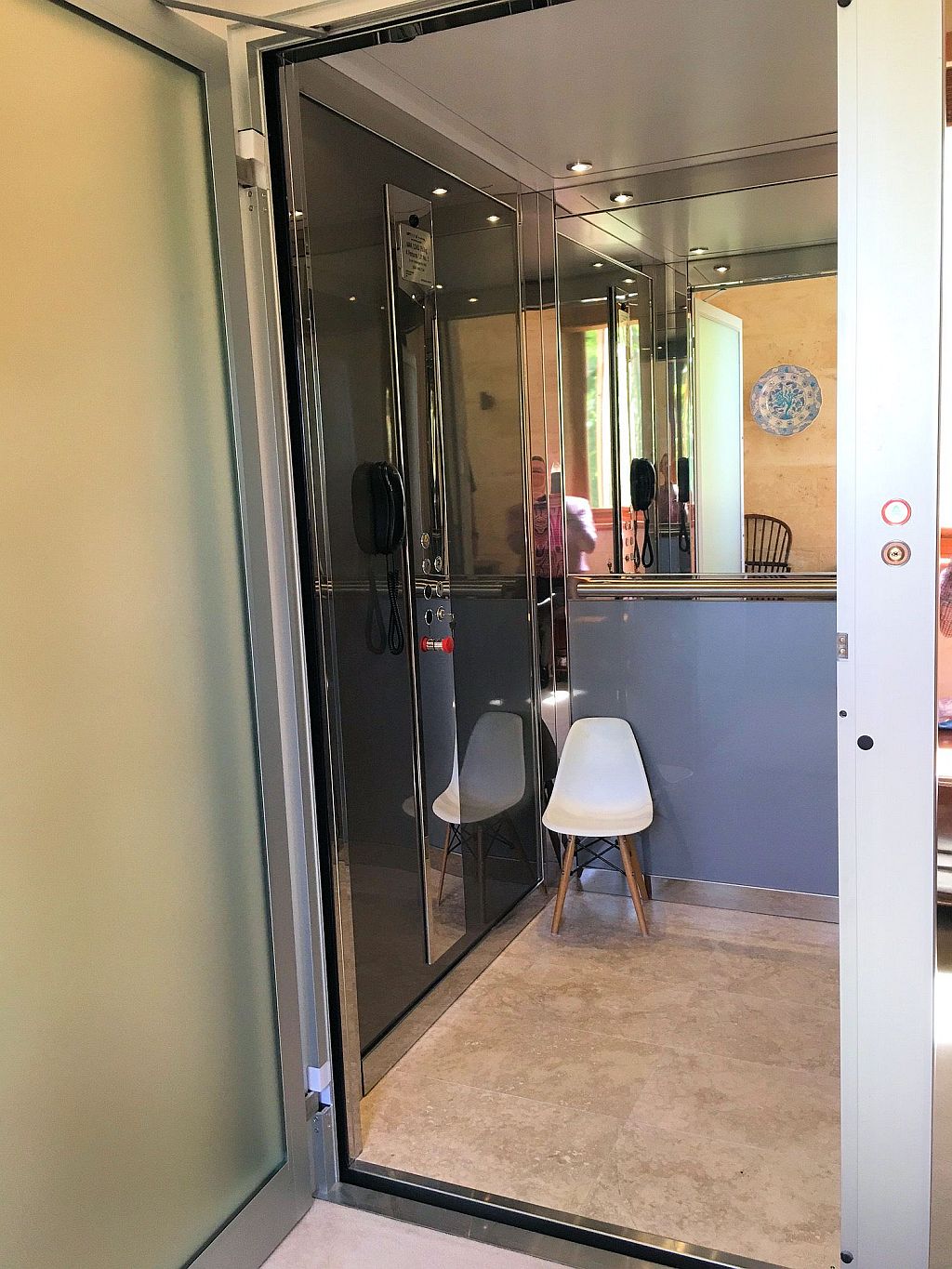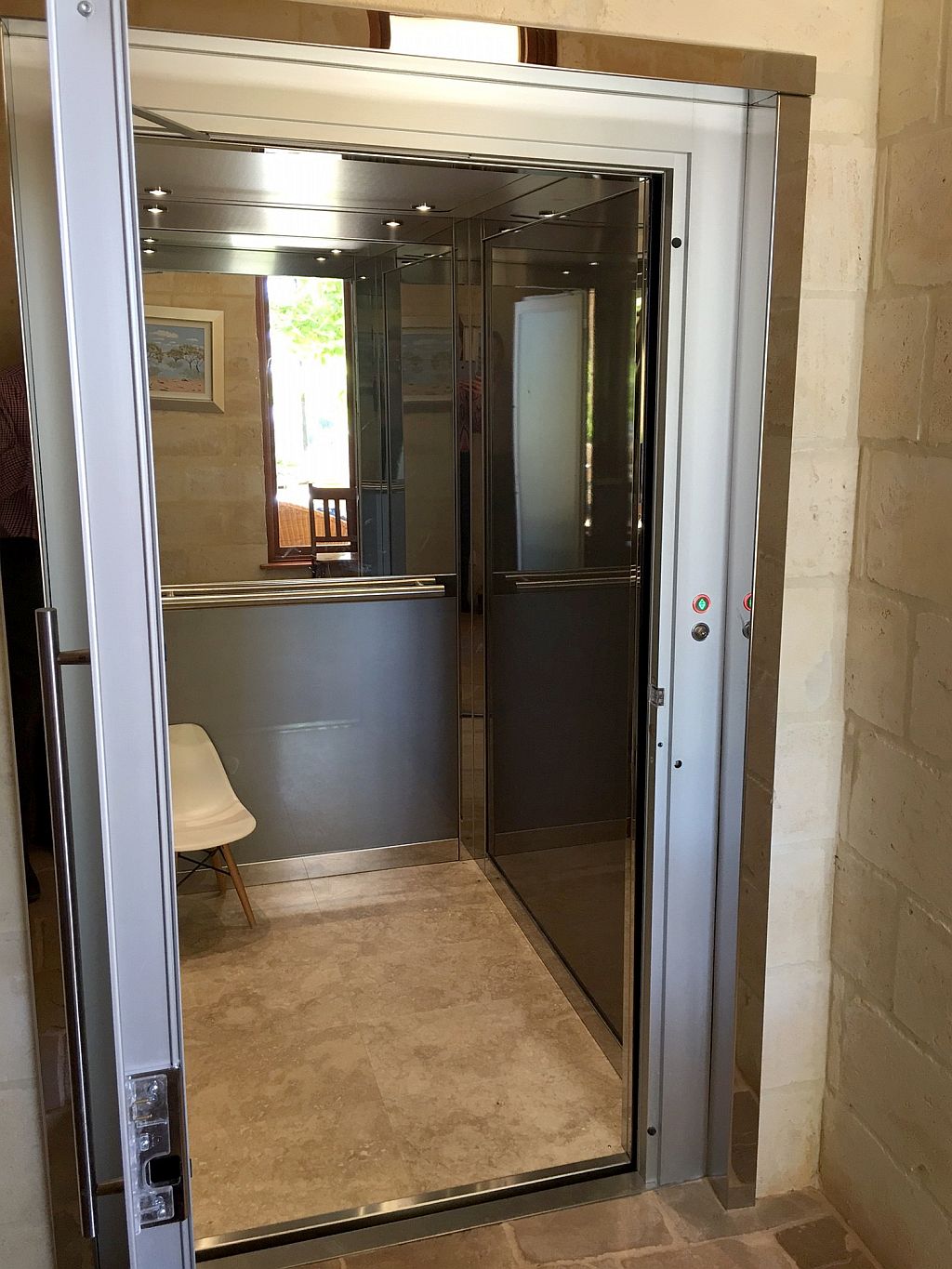 To match the clean, contemporary interiors, the cabin was finished using materials from Lift Shop’s standard range, including anodised aluminium doors fitted with full-size clear glass panels. For added privacy and visual softness, a locally applied frosting effect was added to the glass — ensuring light could still pass through without compromising discretion.