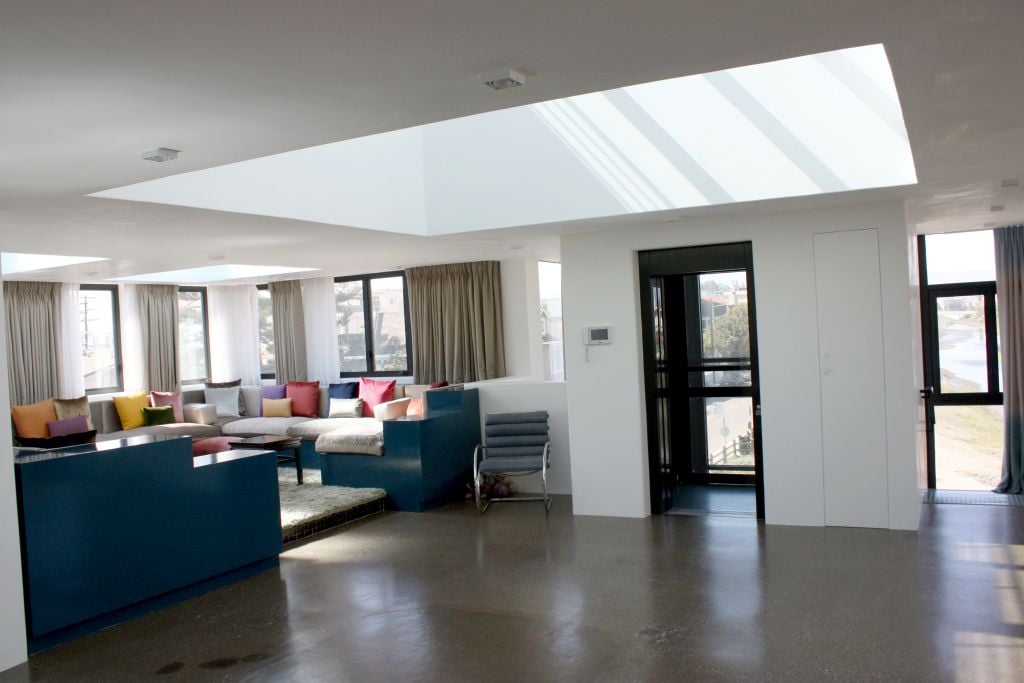 One of the most standout features of this lift installation is its glass shaft, positioned to complement other light-maximising elements in the home — including a glass-bottomed swimming pool above one of the corridors. With the lift shaft acting as a light well, natural daylight floods into the property while allowing uninterrupted views from both inside and out.