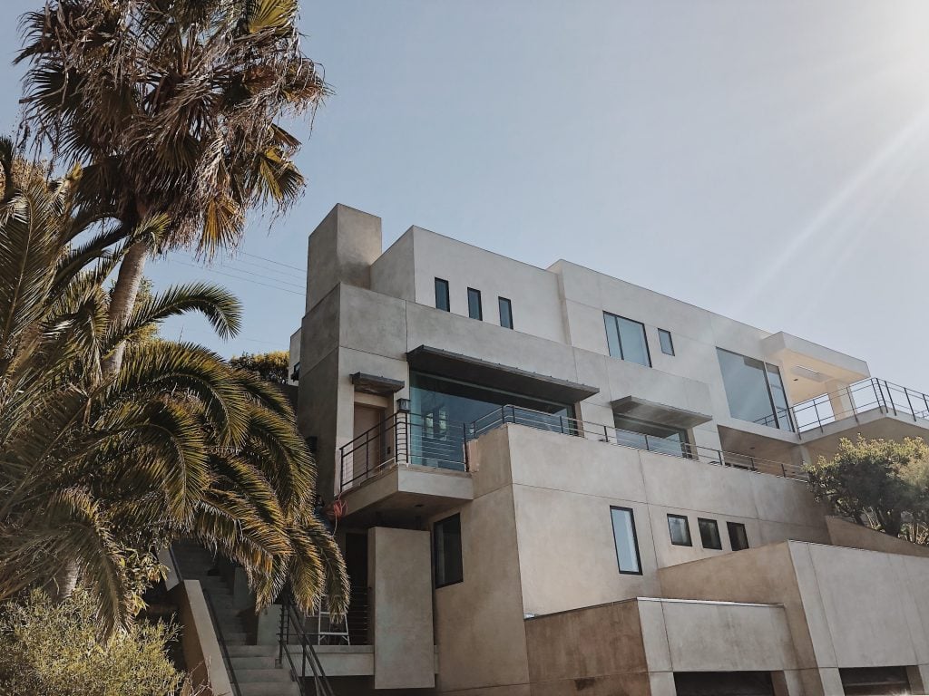 A nontraditional seaside construction, influenced by architectural movements to the likes of brutalism, deconstructivism and post modernism, emphasizes rigid geometric shapes, rough and unfinished concrete, utilitarian values and controlled chaos.
