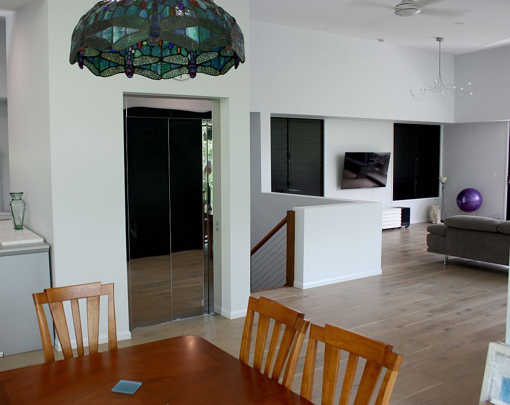 When it comes to standout interiors, this Queensland property doesn’t hold back. At the heart of its vertical design is a truly customised ElfoLift 2 — striking in form and thoughtfully detailed in finish. Blending polished stainless steel surfaces with high-gloss black walls and flooring, the lift achieves a bold, reflective aesthetic that makes a powerful first impression.