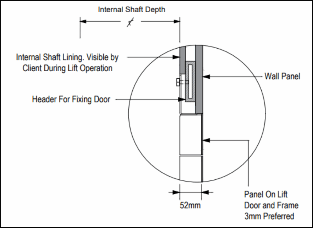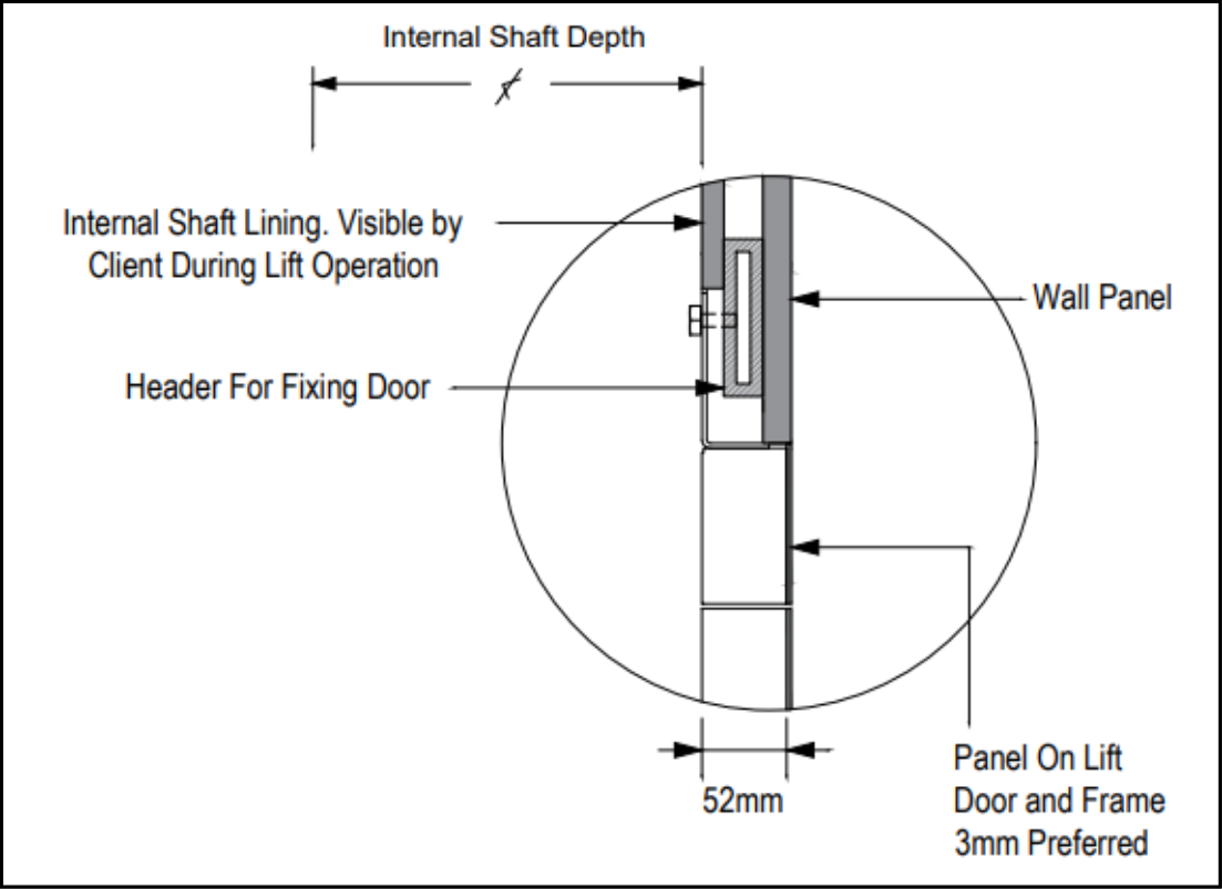 | Between-door walls | Line and finish visible shaft surfaces | Visible during lift operation |