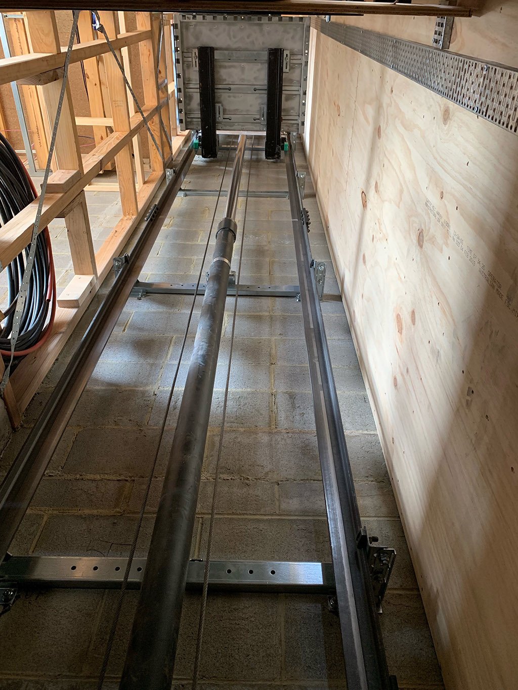 It’s a galvanised steel structure supplied by Lift Shop that supports the lift without a load-bearing wall. Your builder then encloses it for safety.