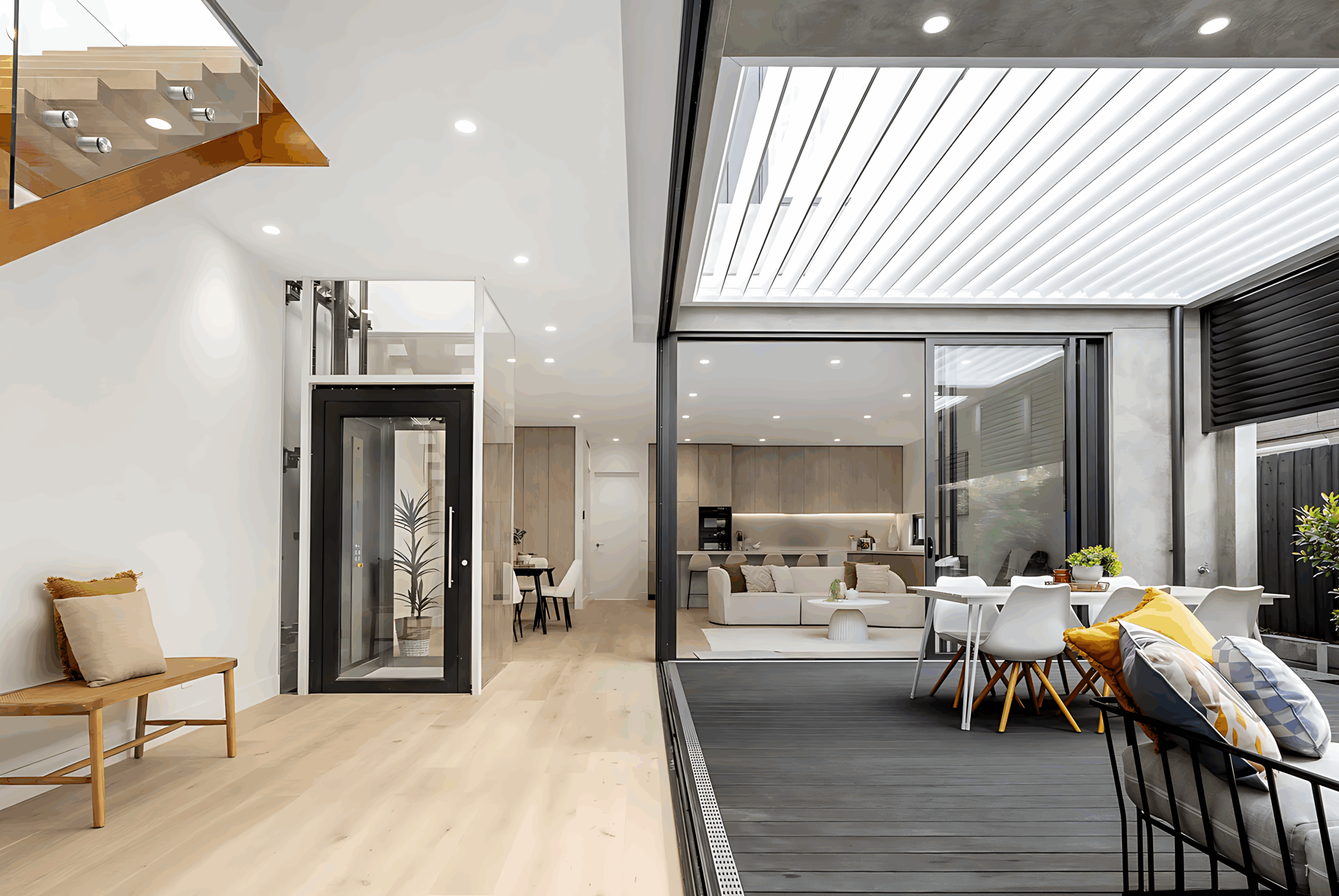 All finishes are engineered for durability in the lift environment, withstanding frequent opening and closing without wear or degradation. Cabin walls can be finished in matching or contrasting colours, and flooring options include non-slip vinyl, timber, or polished materials. Visit our showroom to see and touch finish samples, or review our brochure for colour palettes and combinations.